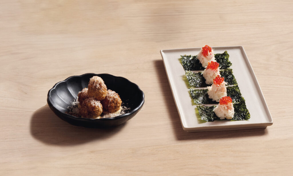 Terms & Conditions: Valid for bookings between 8th – 16th October 2024 only. Complimentary portion of mushroom croquettes or kani & ikura temaki when ordering another dish or drink from the menu. Maximum party size of six guests, one portion per two guests. Not valid in conjunction with any other offer.
