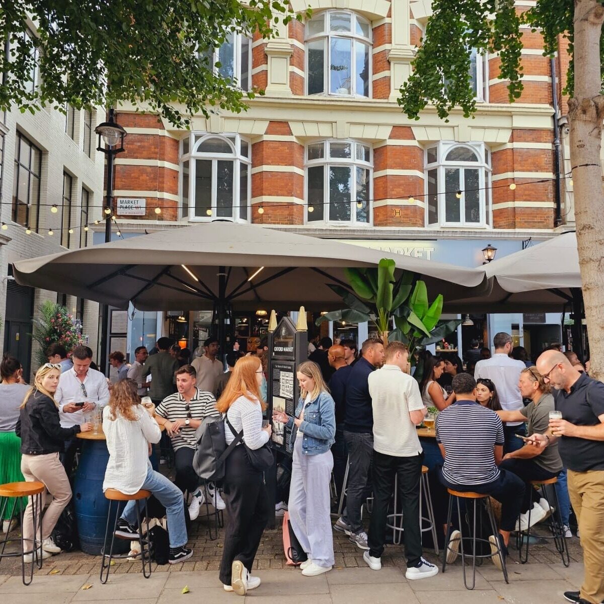 Situated just off Oxford Street on the trendy Market Place lies The Oxford Market. Voted best outdoor terrace in London by Conde Nast /Glamour magazine, The Oxford Market is a heaven for shoppers and locals alike. Serving an array of dishes and sharing plates the food alone has a great reputation as well as the selection of tap beer and cocktails. They also have an amazing club in the basement available for private hire most nights. Definitely worth checking out!