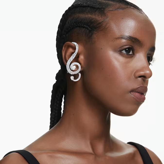 Using Swarovski’s famous crystals mixed with crystal pearls, the earrings within this collection provide drama and elegance to your finished look. We love the statement treble clef earring clips, so chic and winning statement piece.