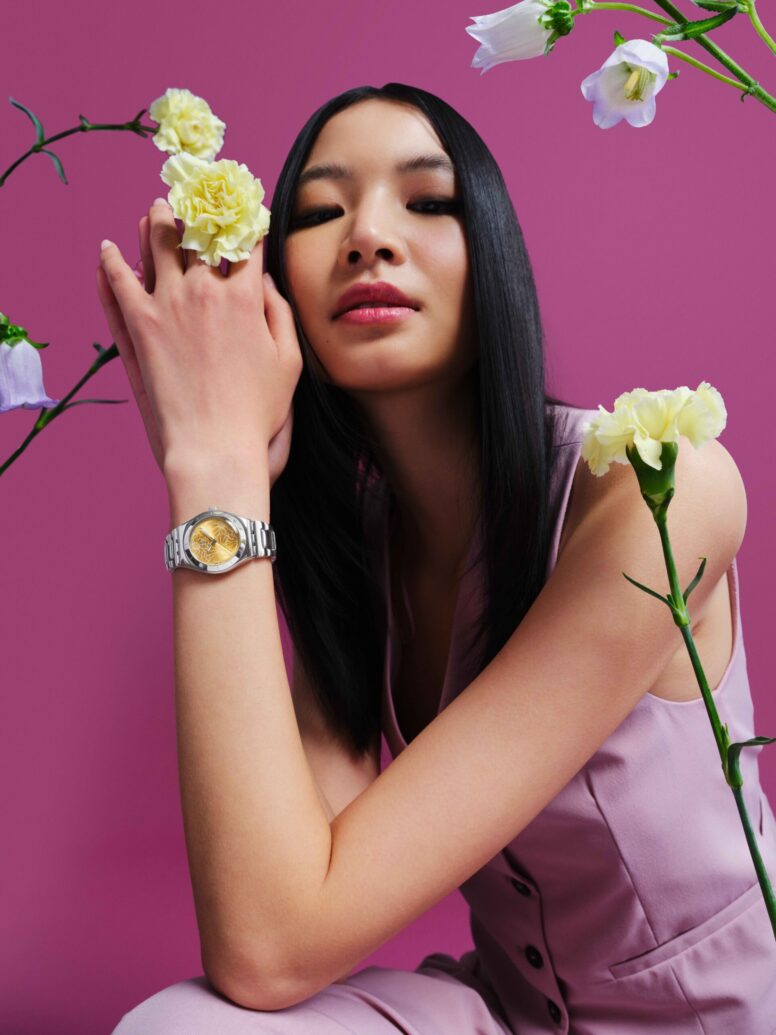Echoing the perseverance and determination associated with magnolia, PETAL BLISS features a silver-coloured dial with an engraved magnolia design.
